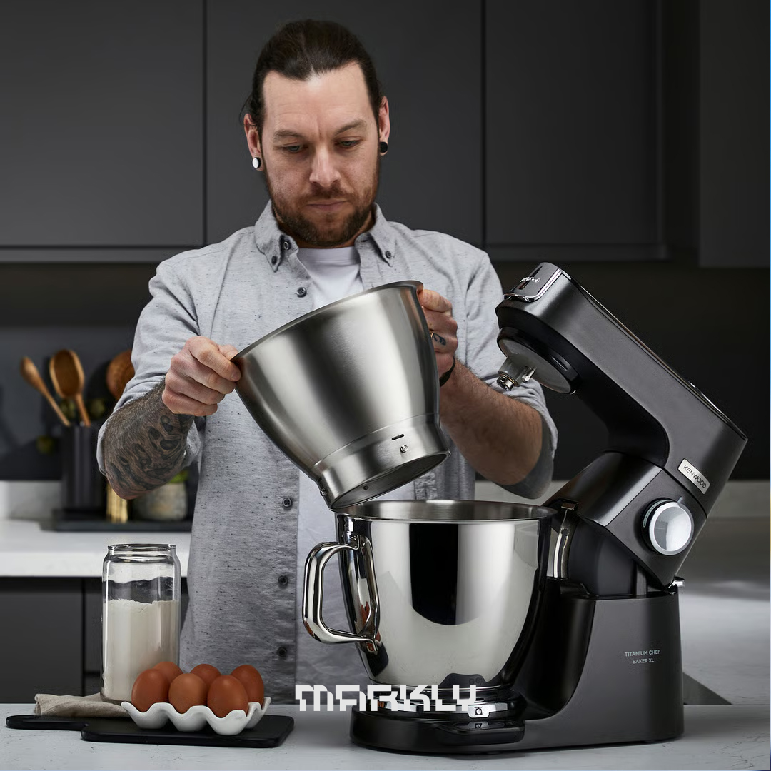 شیرینیپزی حرفهای با همزن کاسهدار: برای تهیه کیک های تولد یا شیرینی های عید، از سری Chef استفاده کنید. با نصب سری خمیرزن، میتوانید نان های خانگی مانند نان بربری یا باگت درست کنید.